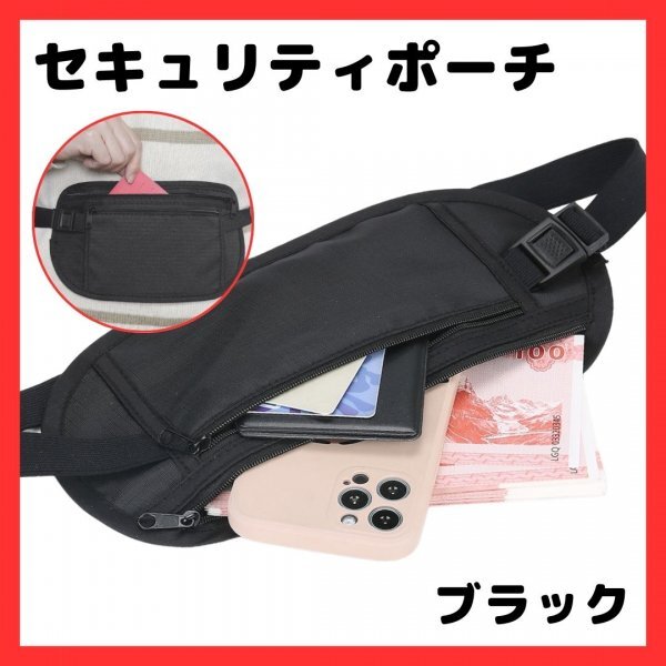 - 464 セキュリティポーチ ブラック 黒 ウエストポーチ ボディバッグ 海外 旅行 修学旅行 防犯 パスポートケース 貴重品