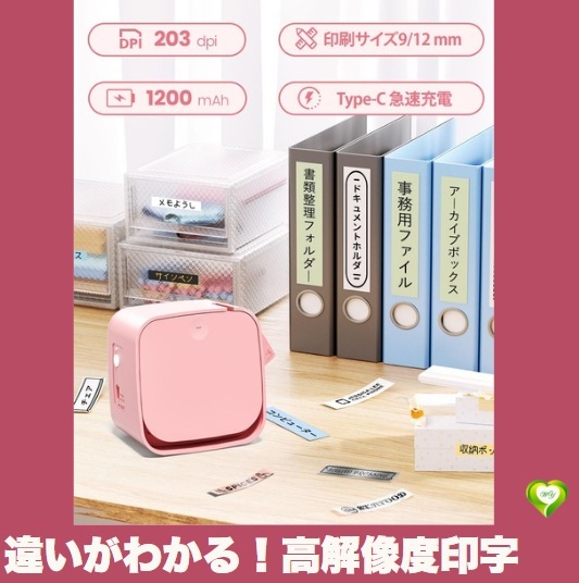 > 【違いがわかる!高解像度印字】ラベルプリンター 熱転写 感熱両用 充電式 ミニプリンター オフィス 家庭 店舗 ラベルシール 人気 おすすめ