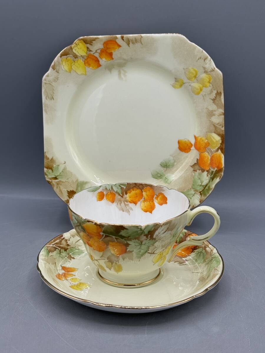 - シェリー トリオ カップ&ソーサー ケーキ 皿 サイドプレート ホオズキ 金彩 カップアンドソーサー (#-3)