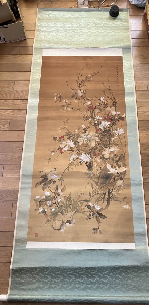 - 【模写】小田半渓 絹本 花鳥図 掛軸 時代 日本画