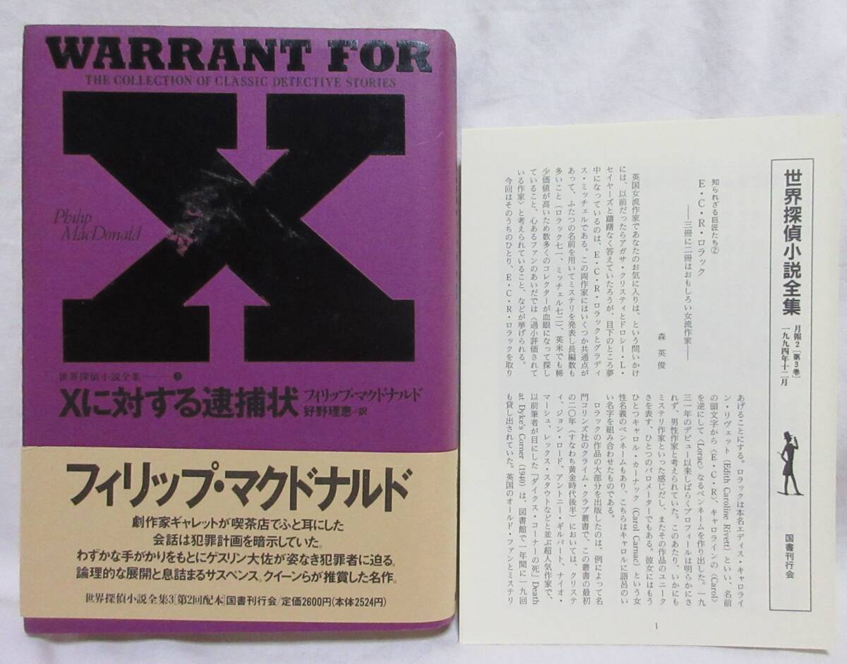 - 【初版/帯/月報付】■世界探偵小説全集3■フィリップ・マクドナルド『Xに対する逮捕状』単行本■国書刊行会 1994年発行