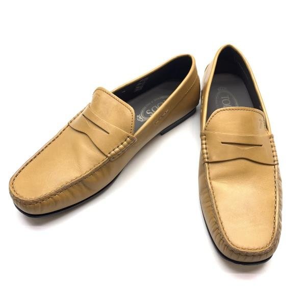> TOD'S トッズ コインローファー ドライビングシューズ キャメル ベージュ系 靴 レザー サイズ 8 2/1 約27.5cm メンズ 管理RY25001689