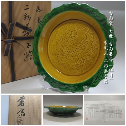 - 【T-376】吉向窯 七世 吉向蕃斎(松月)鳳凰文 二彩菓子器 共箱付 茶道具