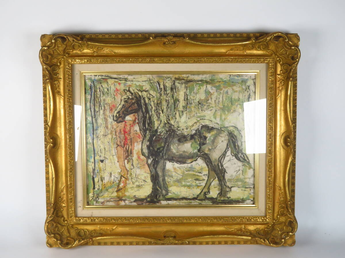 > 真作保証【牛/独立美術会員 福岡の画家 下川都一郎(師 坂本繁二郎)】油彩 油絵 絵画 動物画 作家 画家 作家 豪華額装 49cm×58.2cm【51】