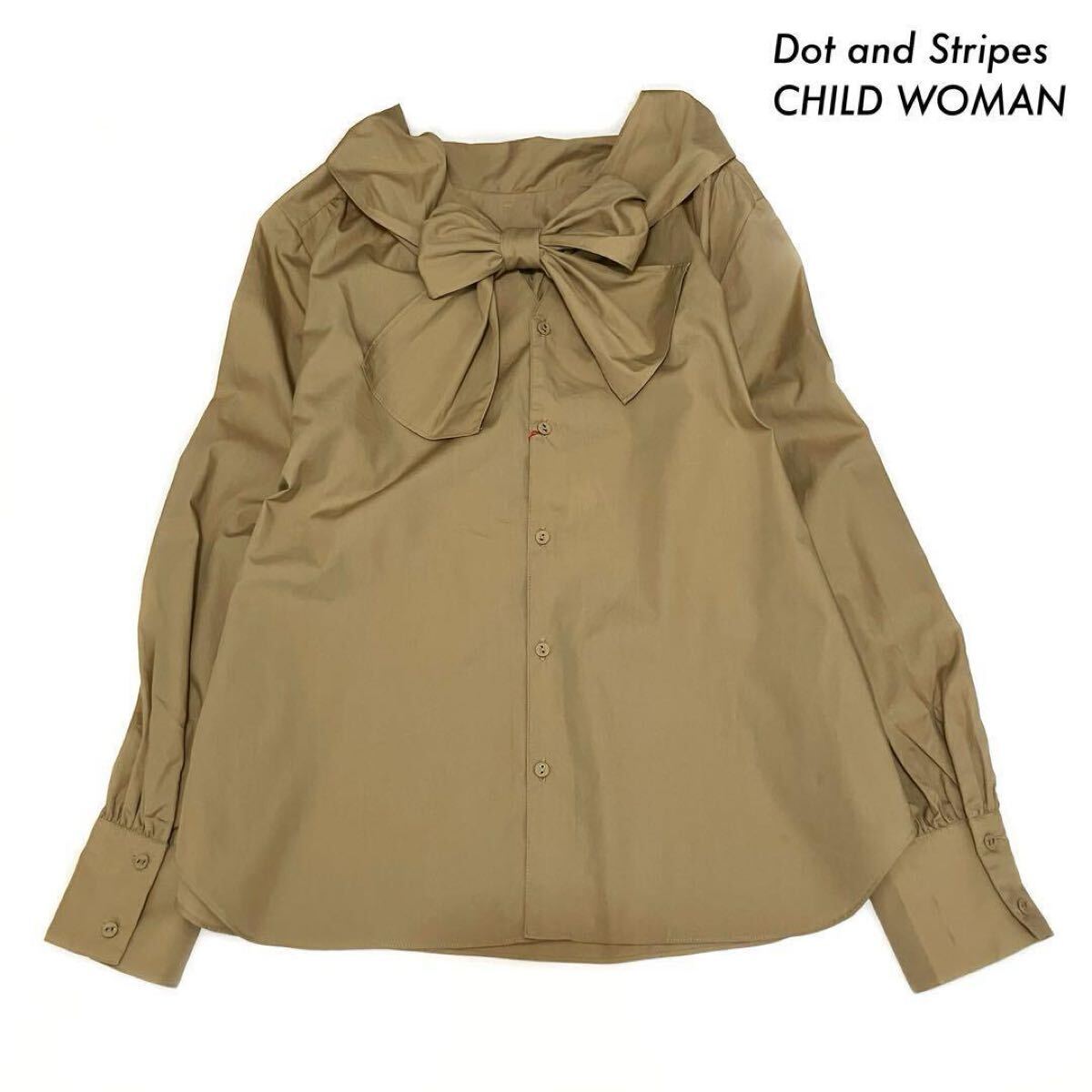 - 【送料無料】Dot and Stripes★長袖ブラウス リボンタイ 未使用品 ブラウン