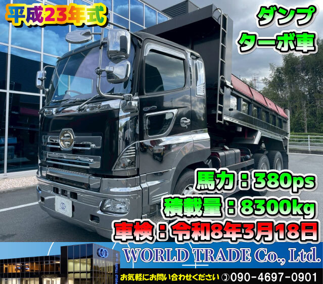 > 【広島発】下取り・ローン受付可! 日野 グランドプロフィア ダンプ 平成23年式 ターボ車 馬力380ps 内寸510×221cm 車検付き