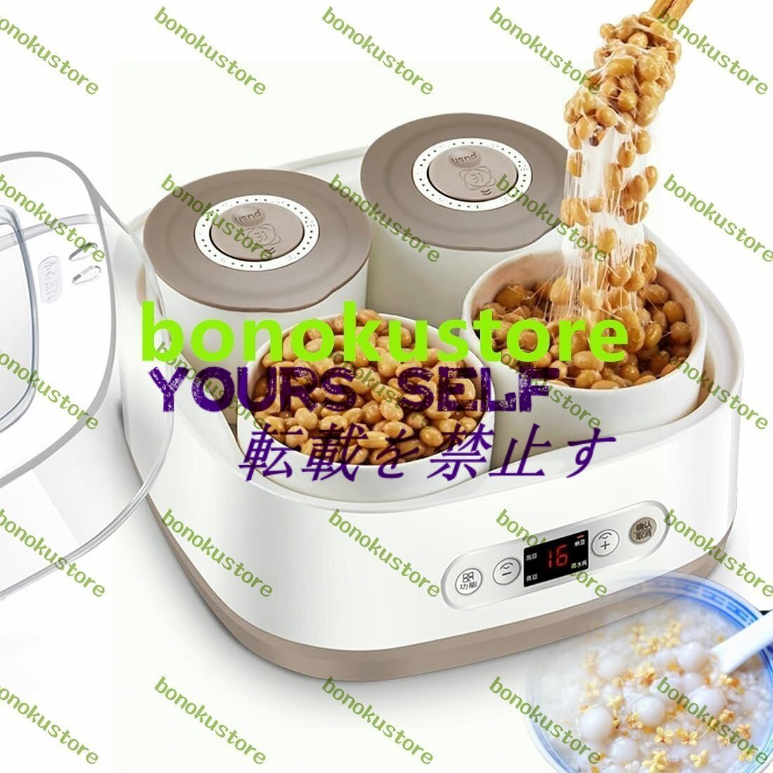 - 2L 電気納豆発酵器 温度調節可能な自動ヨーグルトマシン 多機能チーズメーカー スマートパネル制御付き 4モード