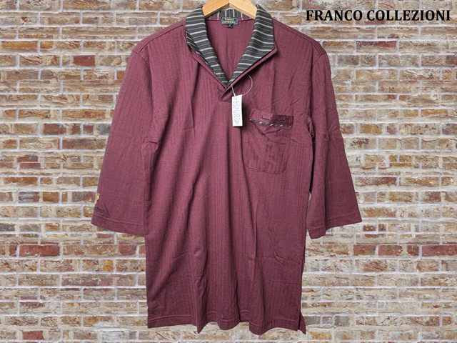 - 41083■Mサイズ■ワイン■FRANCO COLLEZIONI 二重変化衿 七分袖ドレスポロシャツ