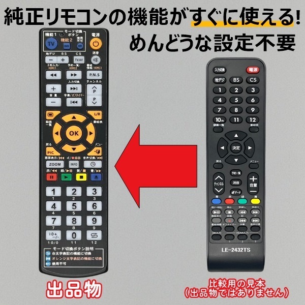 - 【代替リモコン224】TEES LE-2432TS 互換 送料無料 ティーズ 液晶テレビ T's NETWORK
