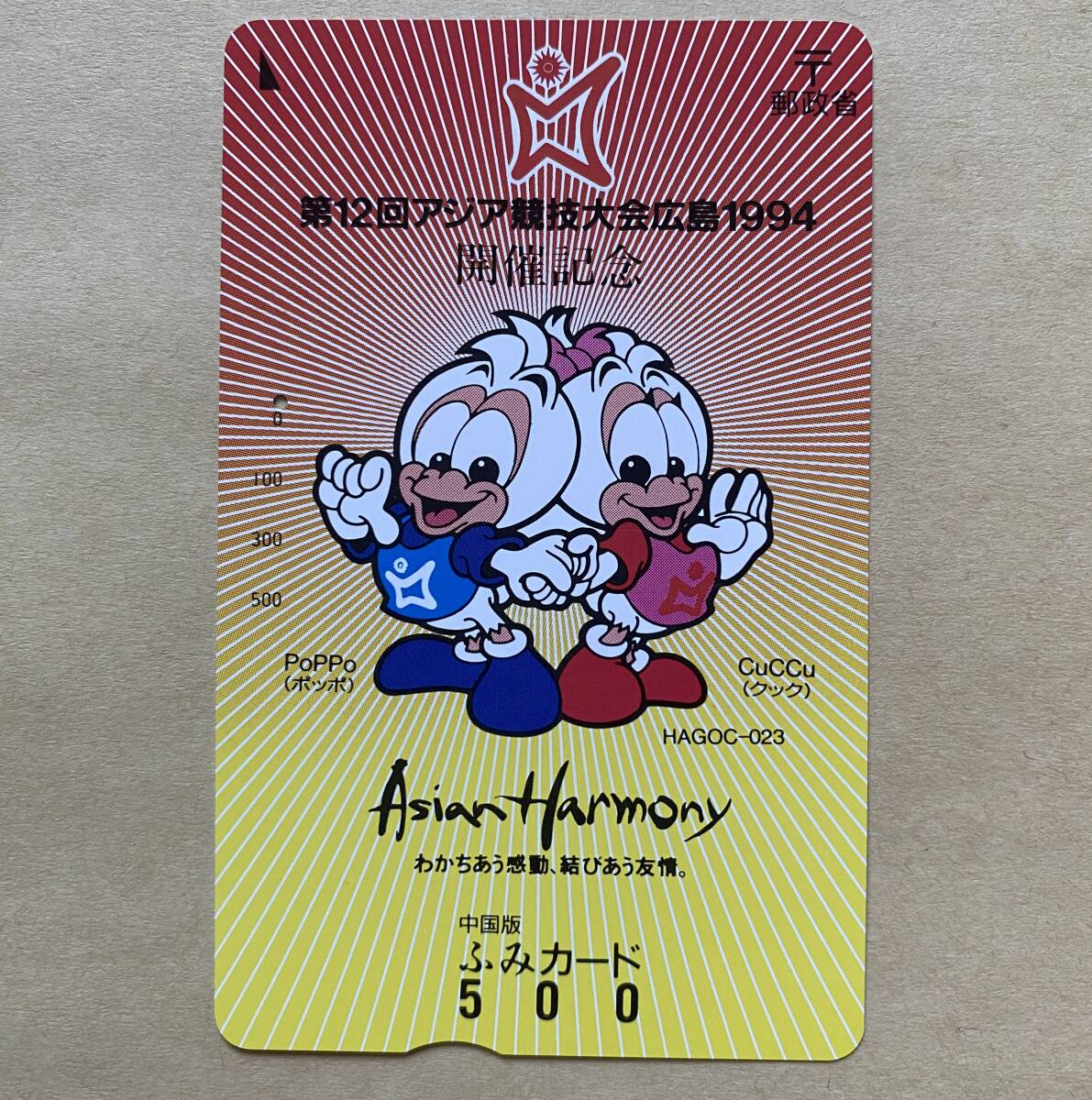 - 【使用済】 ふみカード 中国版 第12回 アジア競技大会広島1994 開催記念 ポッポ クック