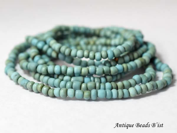 - ●わくわくとんぼ玉★得割! ジャワ古色がかった水色中小粒ビーズ一連ロングC 全長約120Cmあります トンボ玉 ガラスビーズ【Z17020C】
