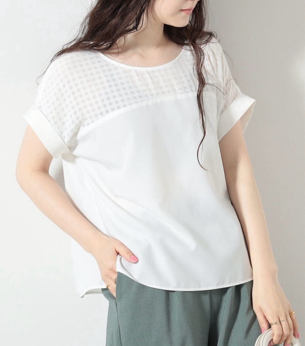 - ★(394)BEAMS HEART WOMEN シアーチェック パネル プルオーバー ホワイト