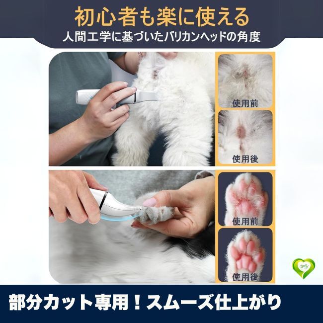 > 【部分カット専用!スムーズ仕上がり】ペット用部分バリカン 猫 小型犬 中型犬 大型犬 足裏 耳 顔 お尻 ケア 静音 人間工学 人気 おすすめ