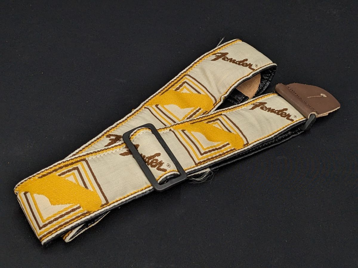 > Q941 FENDER フェンダー ギターストラップ モノグラム 白 黄 茶 White Yellow Brown/60
