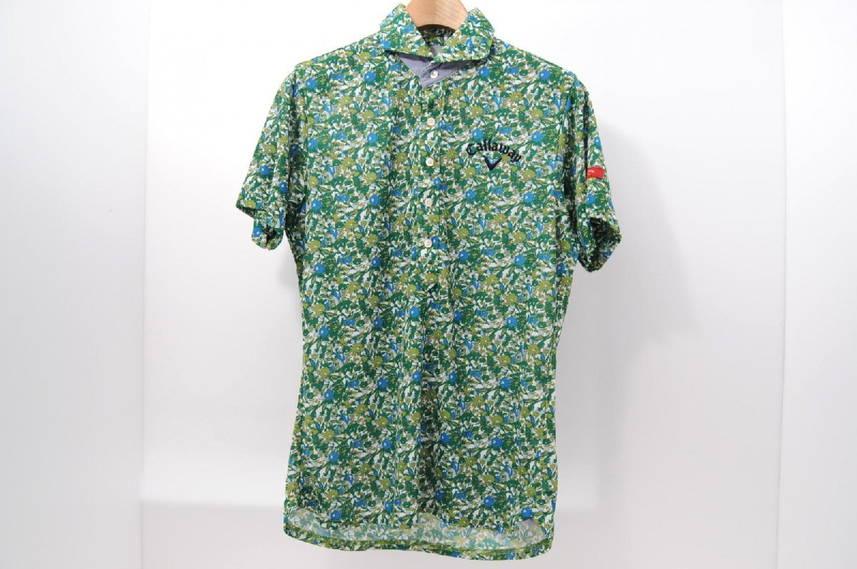 - coco 中古【値下げ】 キャロウェイ Callaway メンズ 半袖ポロシャツ M 緑系 グリーン 総柄 花柄 レターパックプラス発送可 66640