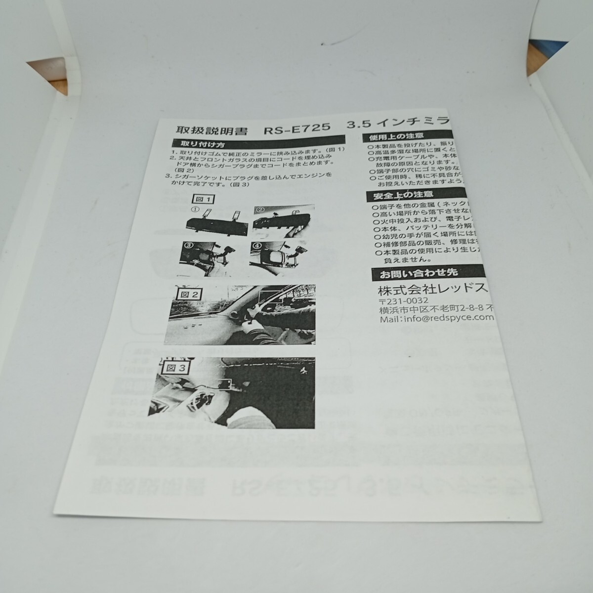 - 取説のみ RS-E725 3.5インチミラータイプ ドライブレコーダー用 取説 取扱説明書のみ