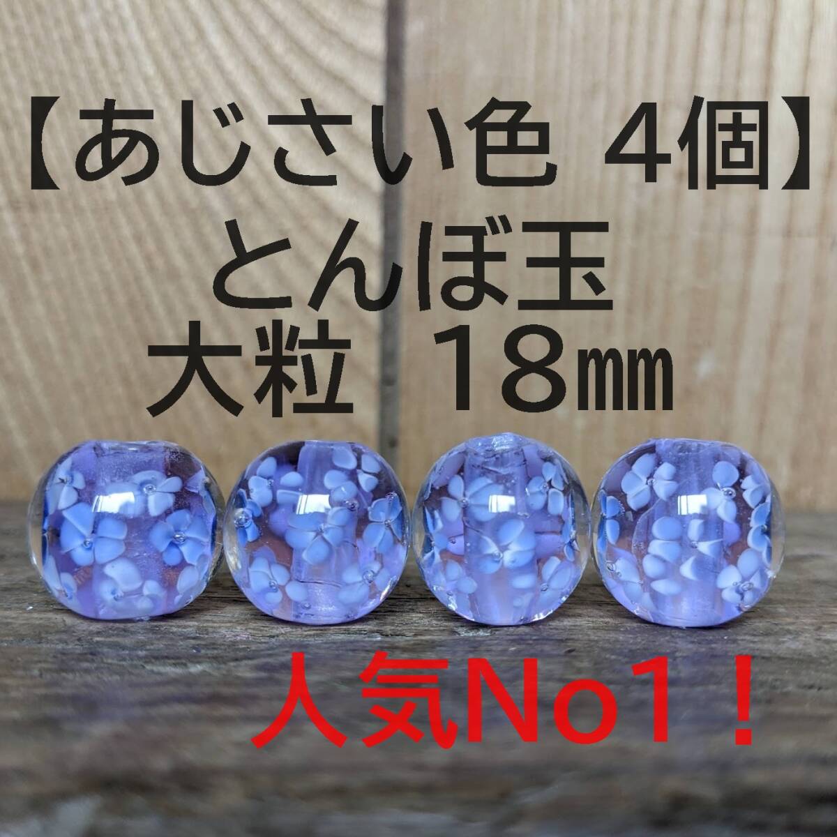 - 【あじさい色4個】とんぼ玉 大粒 18mm トンボ玉 蜻蛉玉 簪 浴衣 薄紫