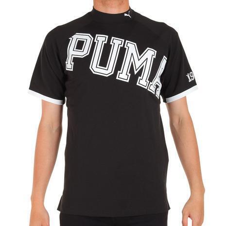 > 新品♪PUMA-GOLF≪プーマ≫♪ゴルフウェア 半袖シャツ メンズ 接触冷感 ビッグ ロゴ 半袖 モックネック シャツ♪ブラック♪サイズL♪