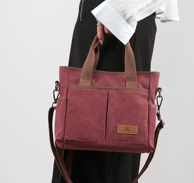 - 2ways旅行 遠足最適 高級キャンバス帆布 メンズ ショルダーバッグ トートバッグ紫