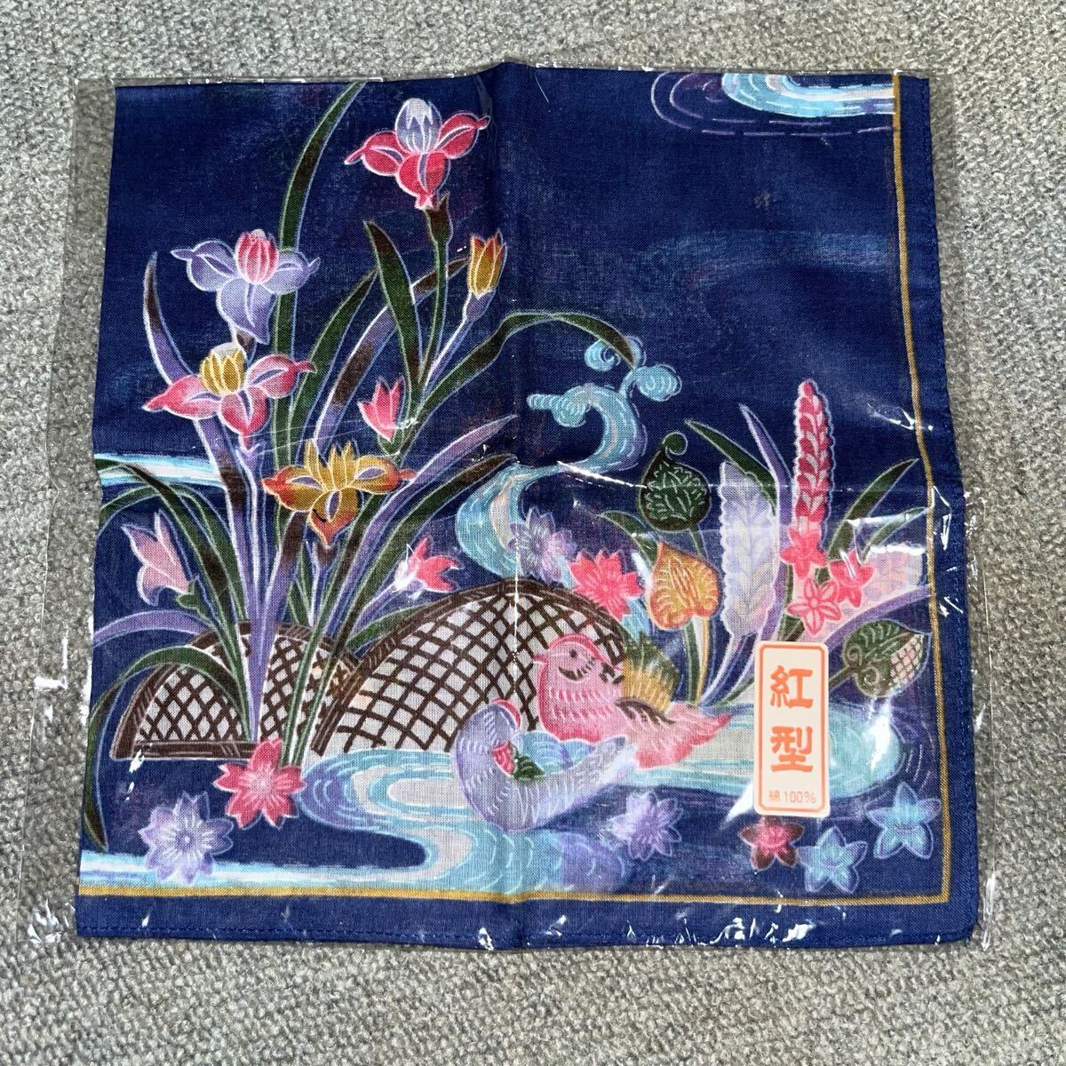 - ハンカチ 紅型 和柄 沖縄? 綿100% 新品未使用 当時物 未開封