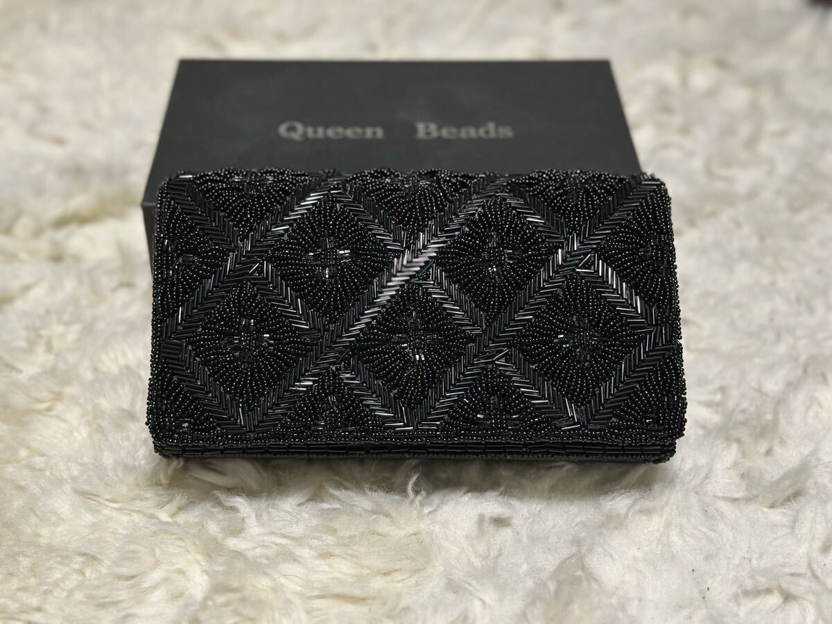 - queen beads/クイーンビーズ/ショルダーバッグ/パーティーバッグ/ショルダーストラップ付/ブラック/黒/総ビーズ/和装/着物/