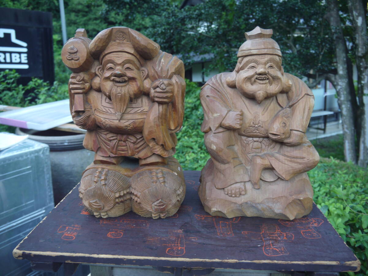 - ★【H40904】奈良一刀彫 恵比寿大黒 彫刻 天然木 高さ36cm 七福神