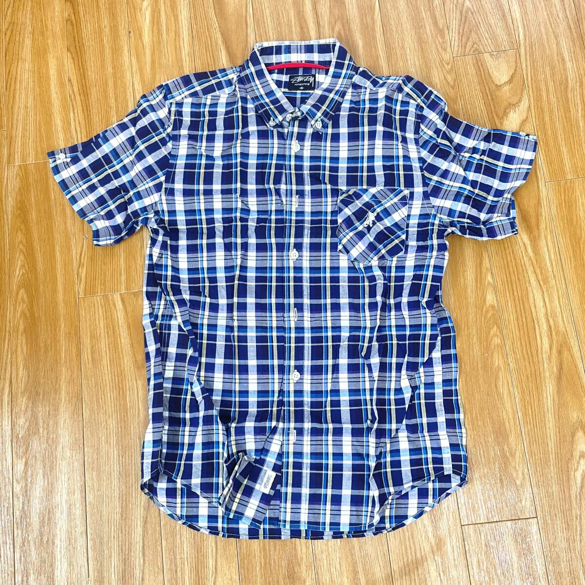 - Stussy 半袖ボタンダウンシャツ Mサイズ 青 チェック柄