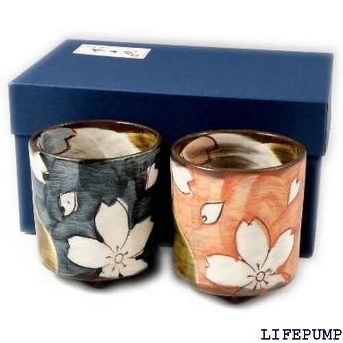 - 有田焼 菊祥窯 織部濃桜 組湯呑 夫婦湯呑 20805 9227