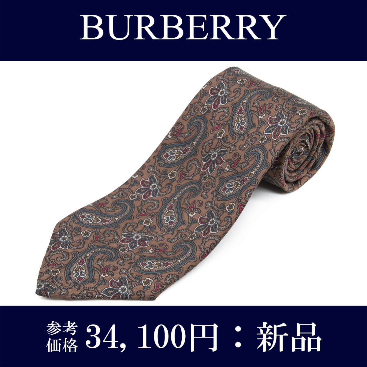 - 送料無料 バーバリー ネクタイ レギュラータイ 新品 シルク 茶色 緑 赤 アイボリー ペイズリー 花 人気 ブランド ヴィンテージ 綺麗 N891
