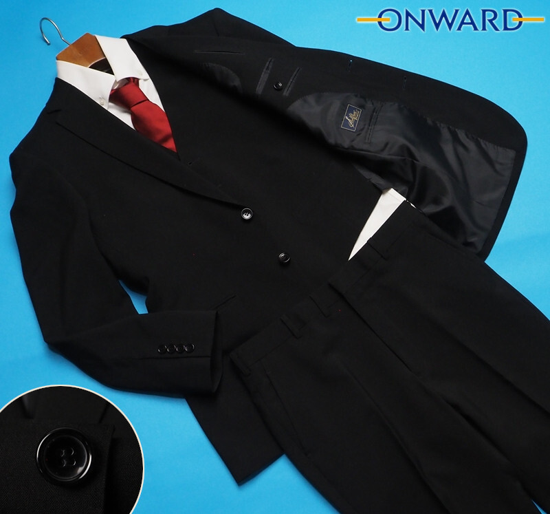 > 新品12.7万円 オンワード樫山 Selflex 日本製 秋冬 ウール100% ソリッド無地 冠婚葬祭OKスリーピース スーツA6黒 875785