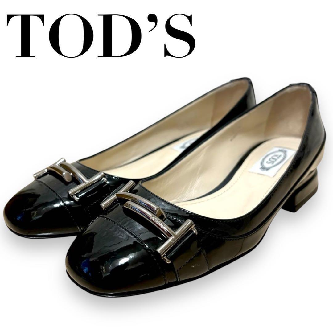 - トッズ パンプス ダブルT タイムレス 黒 パテントレザー 34.5