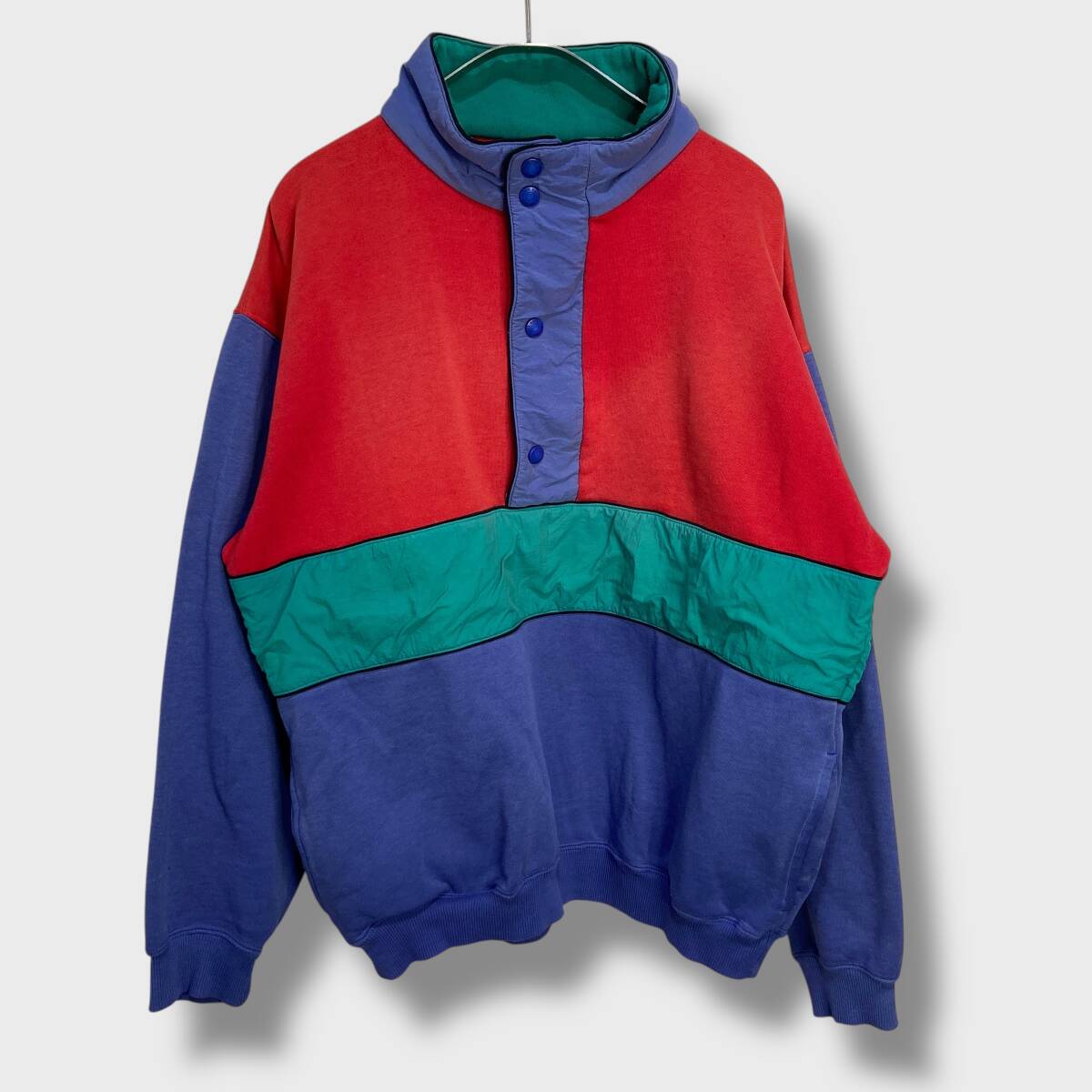 - 送料無料☆90s☆エディーバウアー☆ハーフジップスウェット☆マルチカラー☆切り替え配色☆M☆E25M