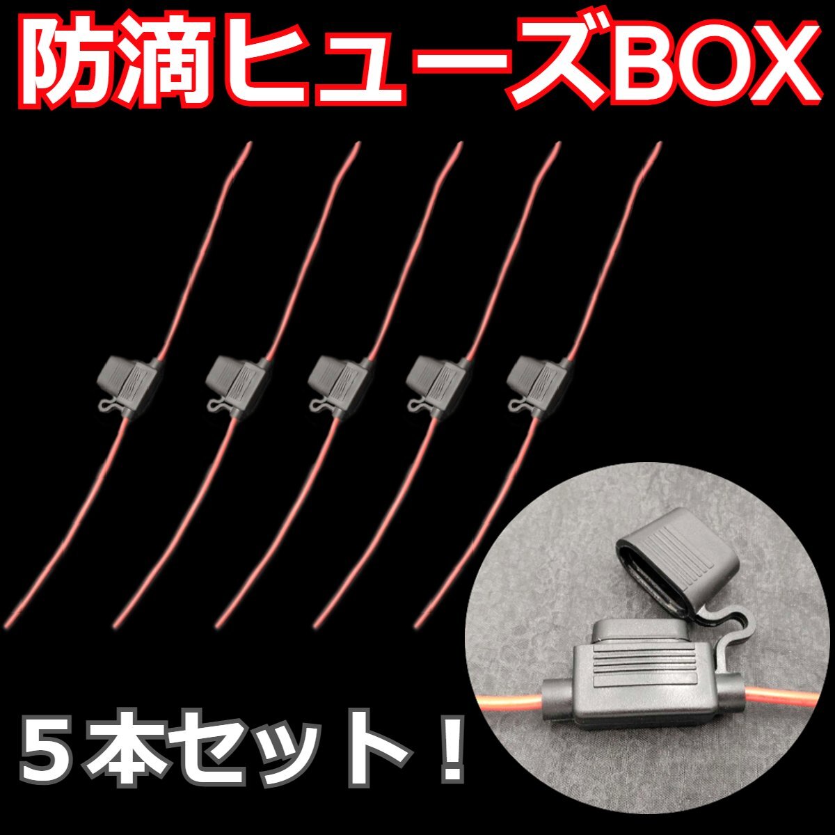 > ヒューズボックス 5本★ヒューズキャップ 自動車 防滴 ヒューズホルダー 平型ヒューズ 配線 コード インライン ETC カーナビ 増設スイッチ