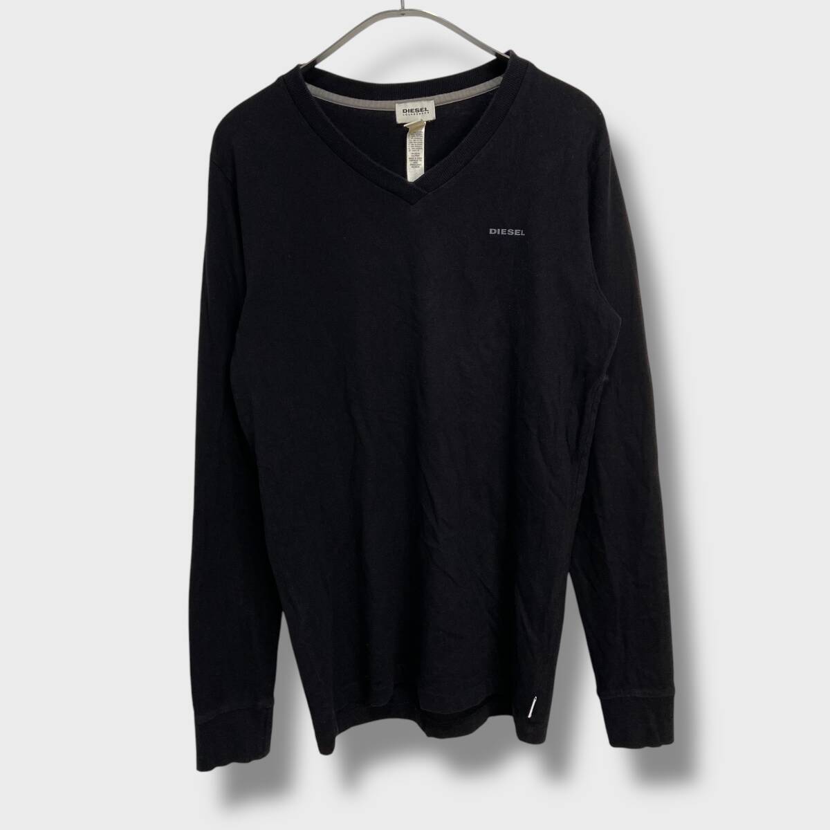 - 送料無料☆DIESEL☆ディーゼル☆Vネックカットソー☆ワンポイントロゴ☆サイズS☆黒☆E25M