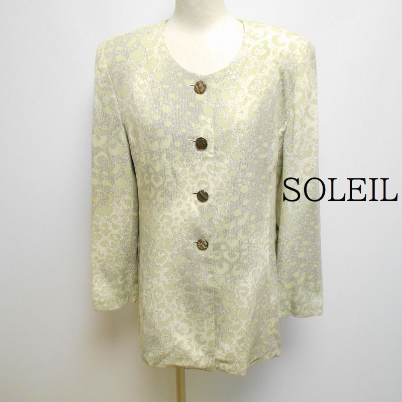 - 888499 SOLEIL ソレイユ ベージュ×モスグリーン柄 ノーカラー ジャケット 9