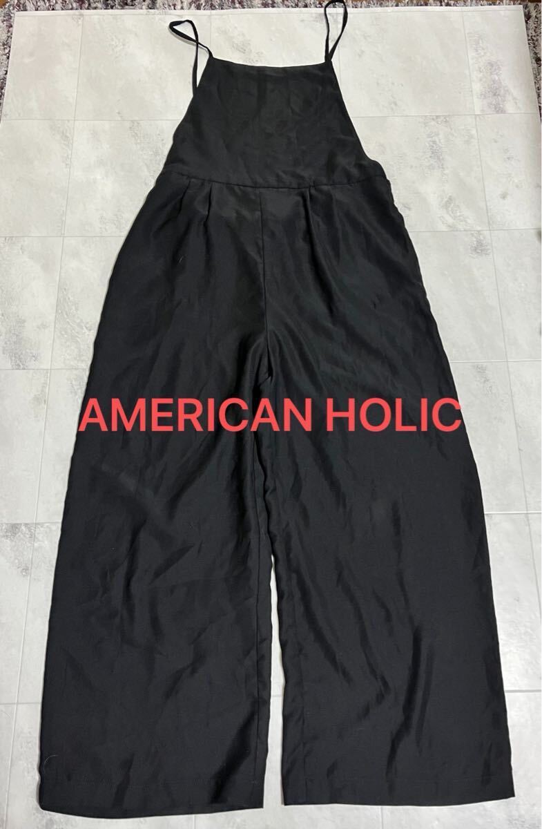 - 美品!「AMERICAN HOLIC」 アメリカンホリック オーバーオール サロペット フリーサイズ 黒 ブラック レディース