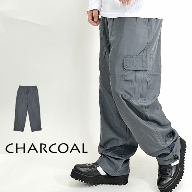 - アシメ左右非対称 ポリ素材 ワイド カーゴパンツ 左右非対称 38661 メンズ トリコット 新品 チャコール LL