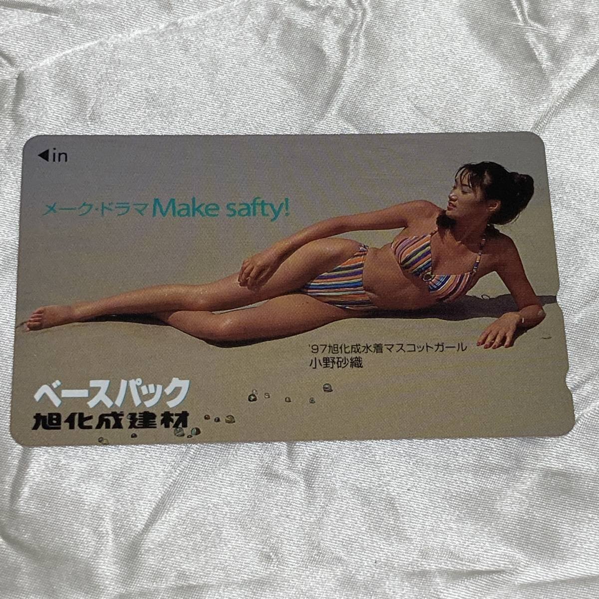 - SK【未使用】 小野砂織 【テレカ】 旭化成建材 マスコットガール 水着 ハイレグ メークドラマ Make safty! テレホンカード 50度数