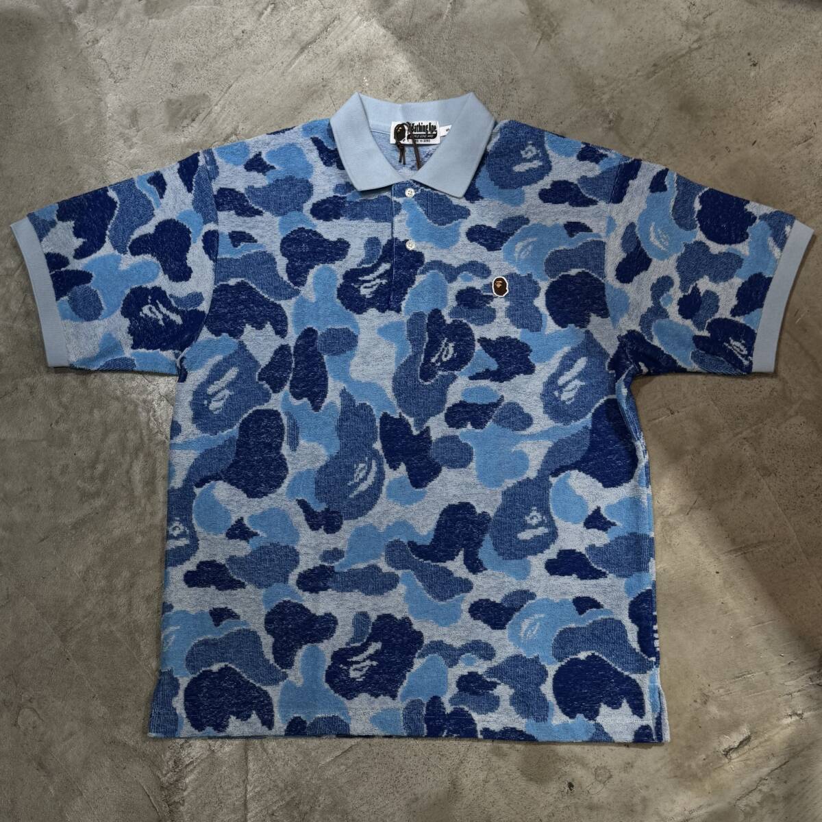 - A BATHING APE 25ss ABC CAMO PILE JACQUARD RELAXED FIT POLO SHIRT BLUE SIZE-S アベイシングエイプ カモ パイル ポロシャツ BAPE ベイプ
