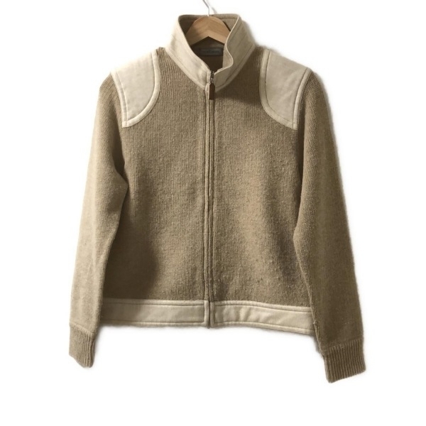 > ニューヨーカー NEW YORKER ブルゾン サイズM - ベージュ×アイボリー レディース 長袖/ニット/ジップアップ/秋/冬 ジャケット