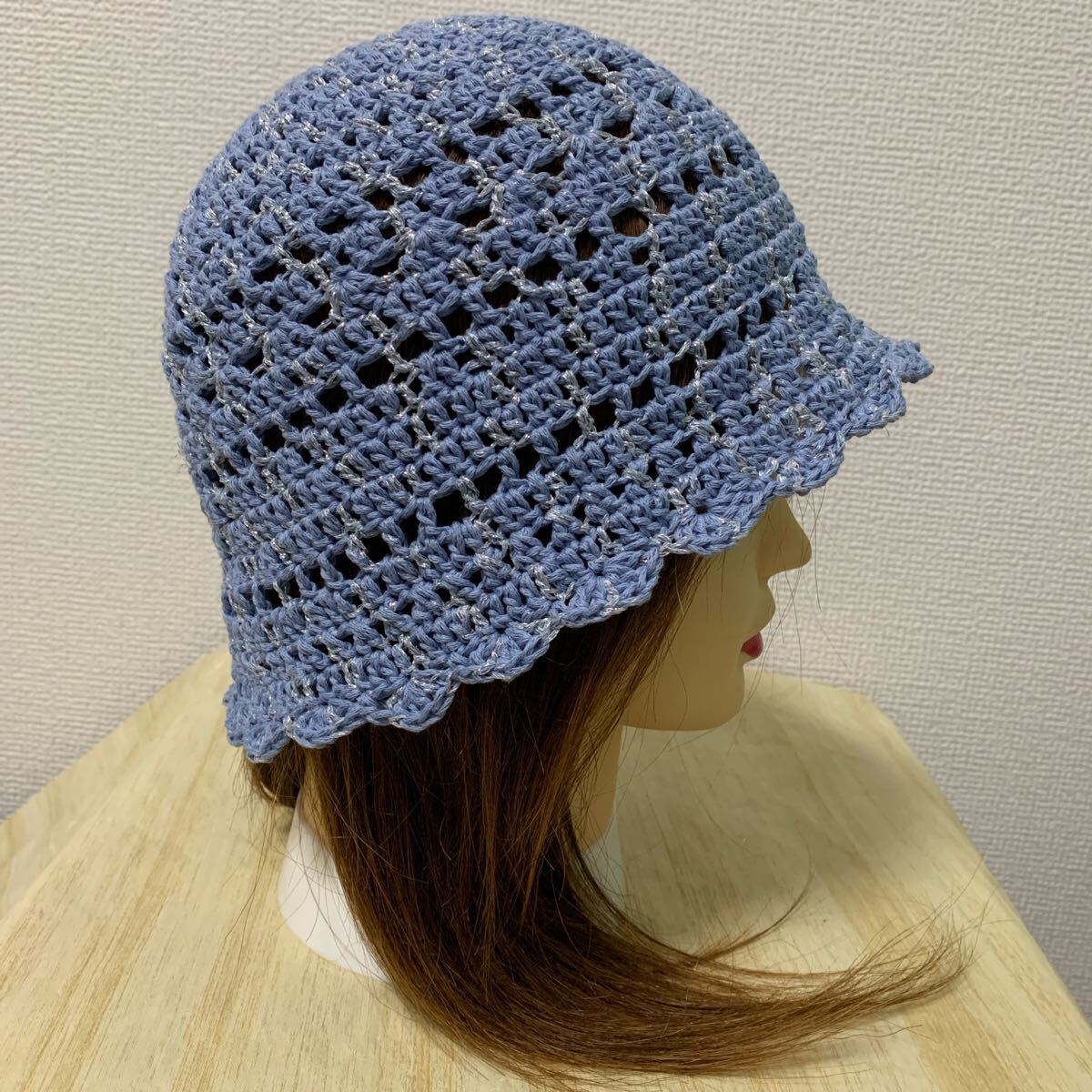- 【a95】コットン レース編み フリル 天の川 バケットハット 帽子