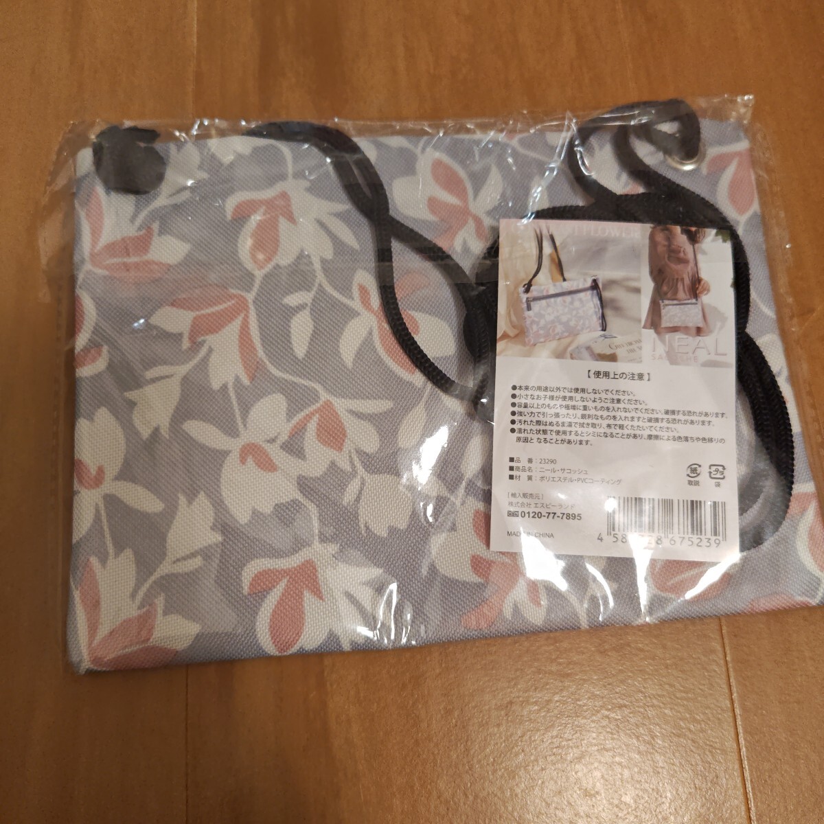 - ニール・サコッシュ サコッシュ ショルダーバッグ 簡易 花柄 ニール・コントラストフラワーシリーズ グレー ピンク
