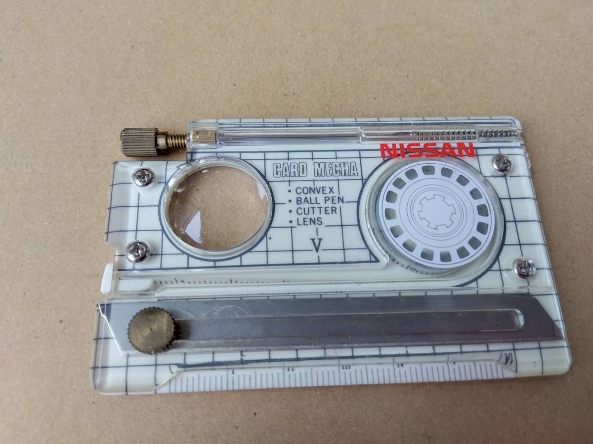 - 当時物 日産 純正 マルチツール ボールペン メジャー 拡大鏡 カッター 定規 カセットテープ 型 ツール NISSAN