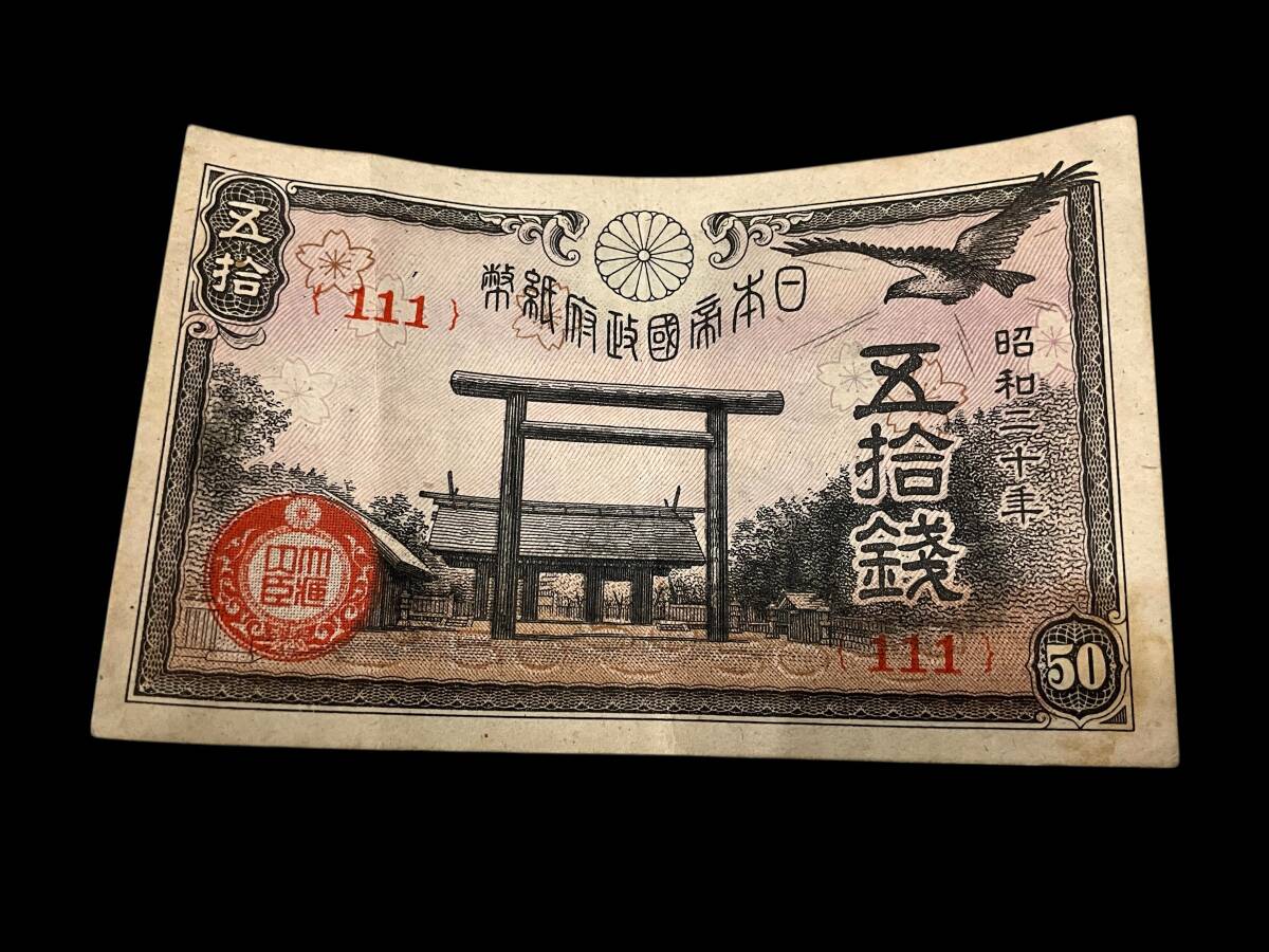 - ●H7-6-96『ゾロ目』111 靖国五拾銭 昭和二十年 1945年 政府紙幣 長期保管品 送料無料