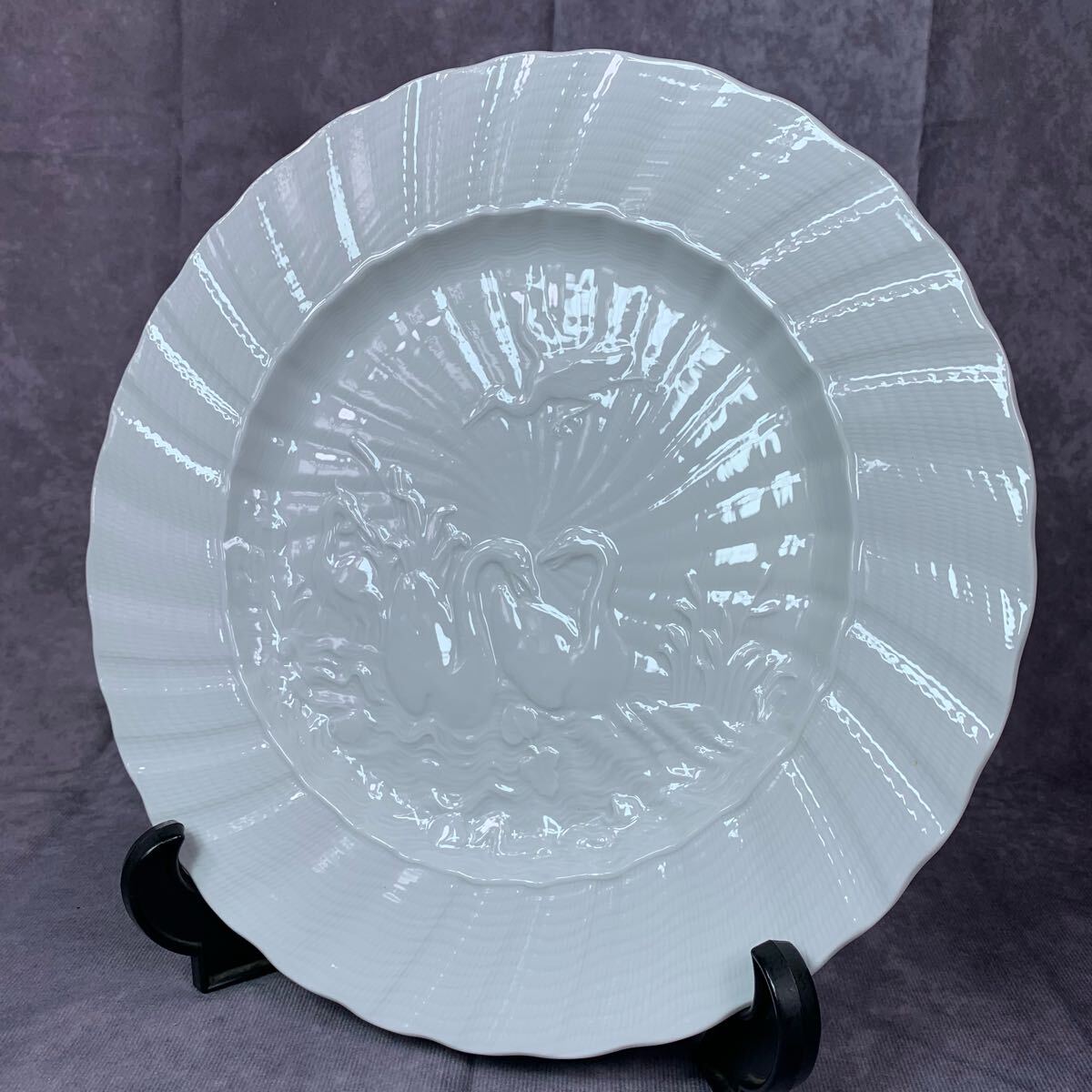 > ★ 美品 Meissen マイセン スワンサービス プレート 大皿 陽刻 西洋美術 高級ライン 美術品 28.5cm 2
