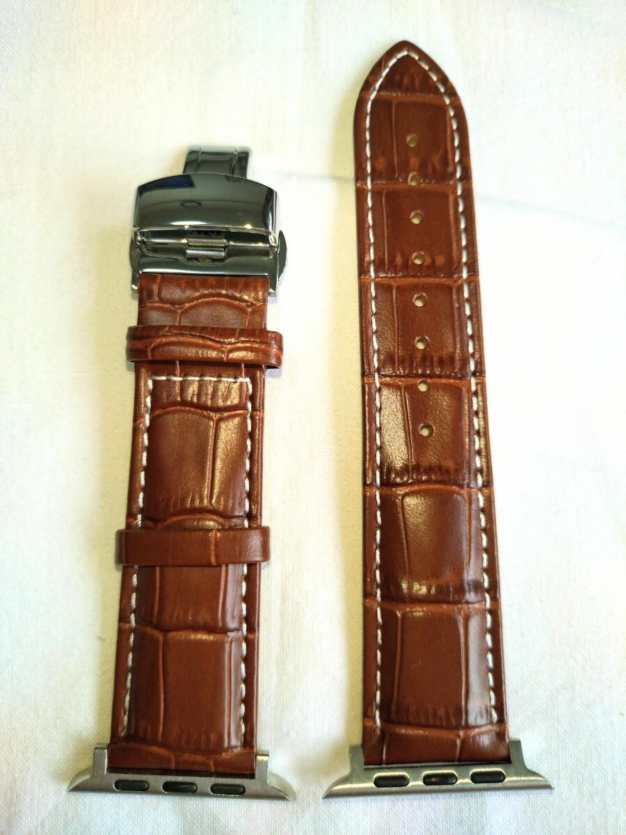 - 【新品】 アップルウォッチ ベルト バンド 合成皮革 合皮 クロコ型 ブラウン BROWN 茶色 腕時計ベルト 替ベルト ゴールド