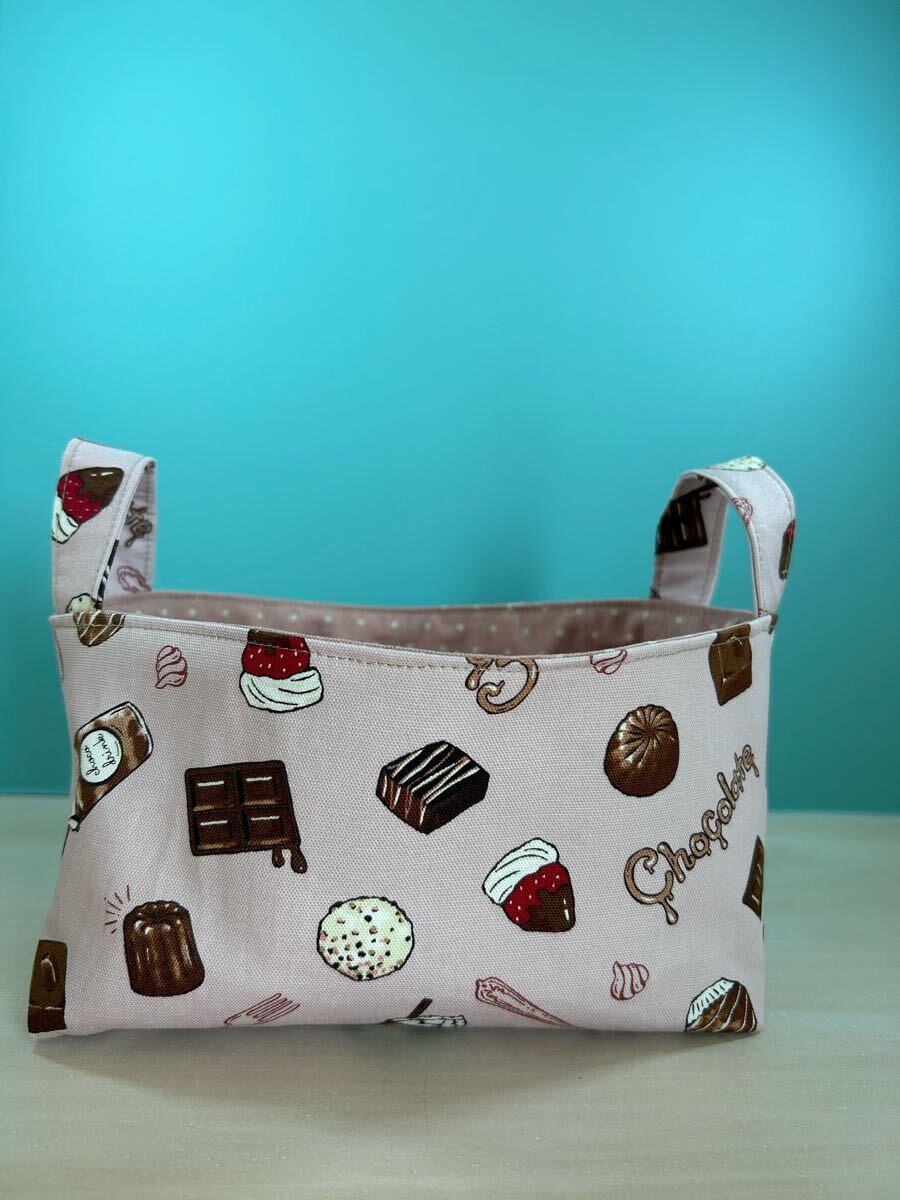 - ハンドメイド☆布バスケット ピンク チョコレート