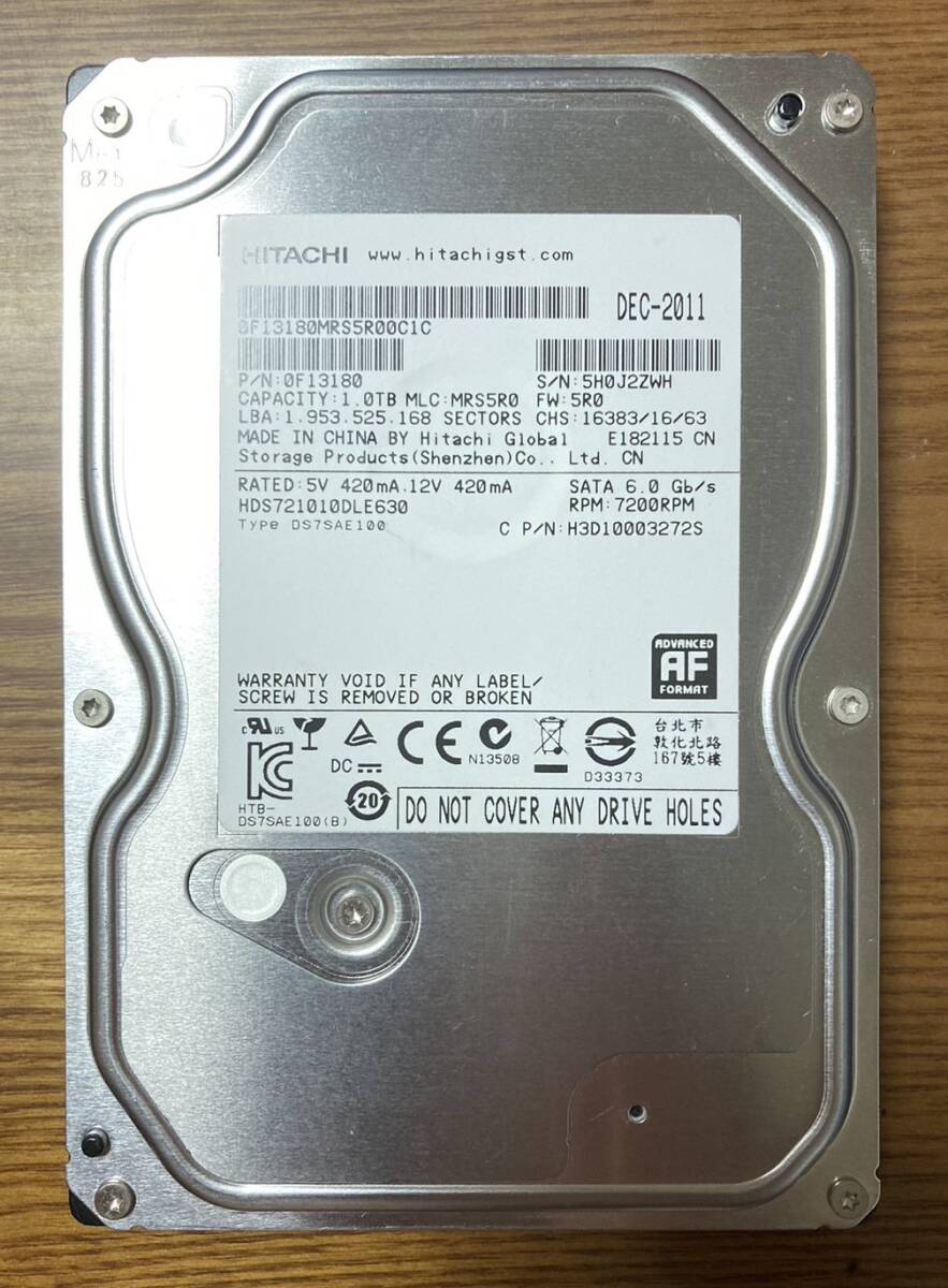 > 【状態◎】日立 Hitachi/HGST Deskstar 7K1000.Dシリーズ HDS721010DLE630 3.5インチ HDD 1TB(ハイパフォーマンス仕様HDD)