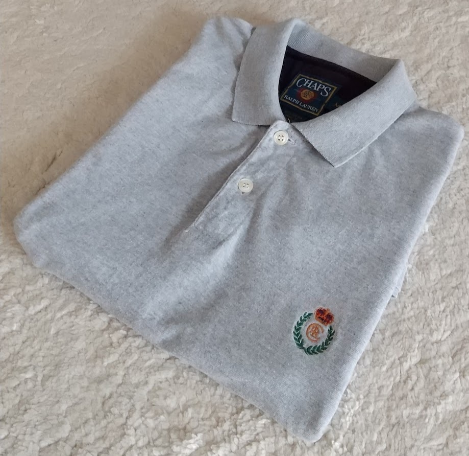 > 【難あり】90s CHAPS RALPH LAUREN メンズ半袖ポロシャツ グレー チャップスラルフローレン Mサイズ