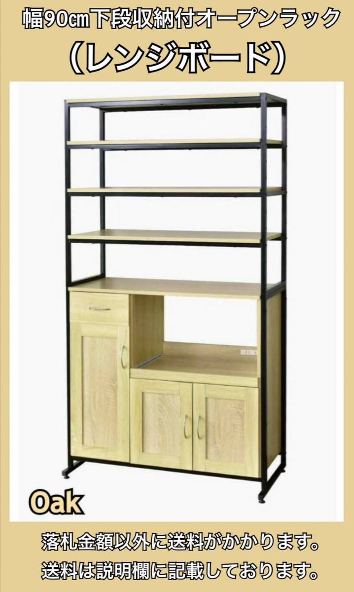 > ■お買い得価格■ 未使用 幅90㎝ レンジボード / 下段収納付オープンラック 引き出し収納 スライド棚 MK1219 オーク 要組立 2台有